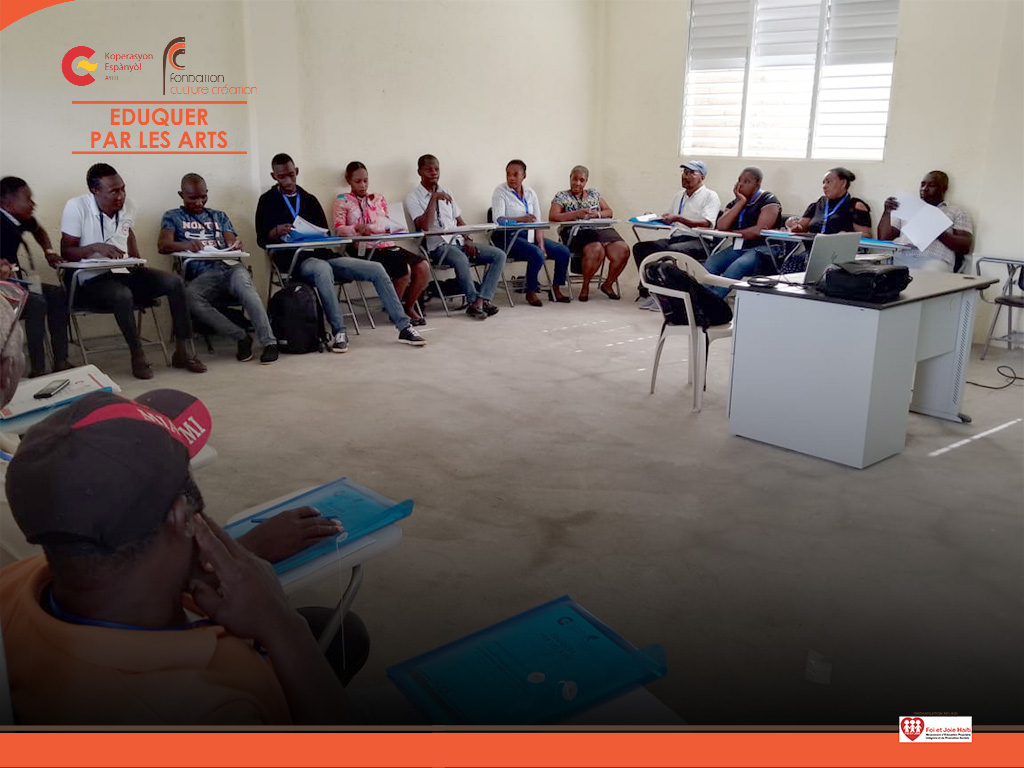 La Fondation Culture Création poursuit ses activités de formation dans le cadre du projet Eduquer par les Arts-Phase 2, projet de formation en élaboration et de mises en place de programmes éducatifs et culturels dans les établissements scolaires, financé principalement par l’AECID a pour objectif général de développer les pratiques artistiques et culturelles dans 5 écoles communautaires haïtiennes situées dans des zones vulnérables de Ouanaminthe.
