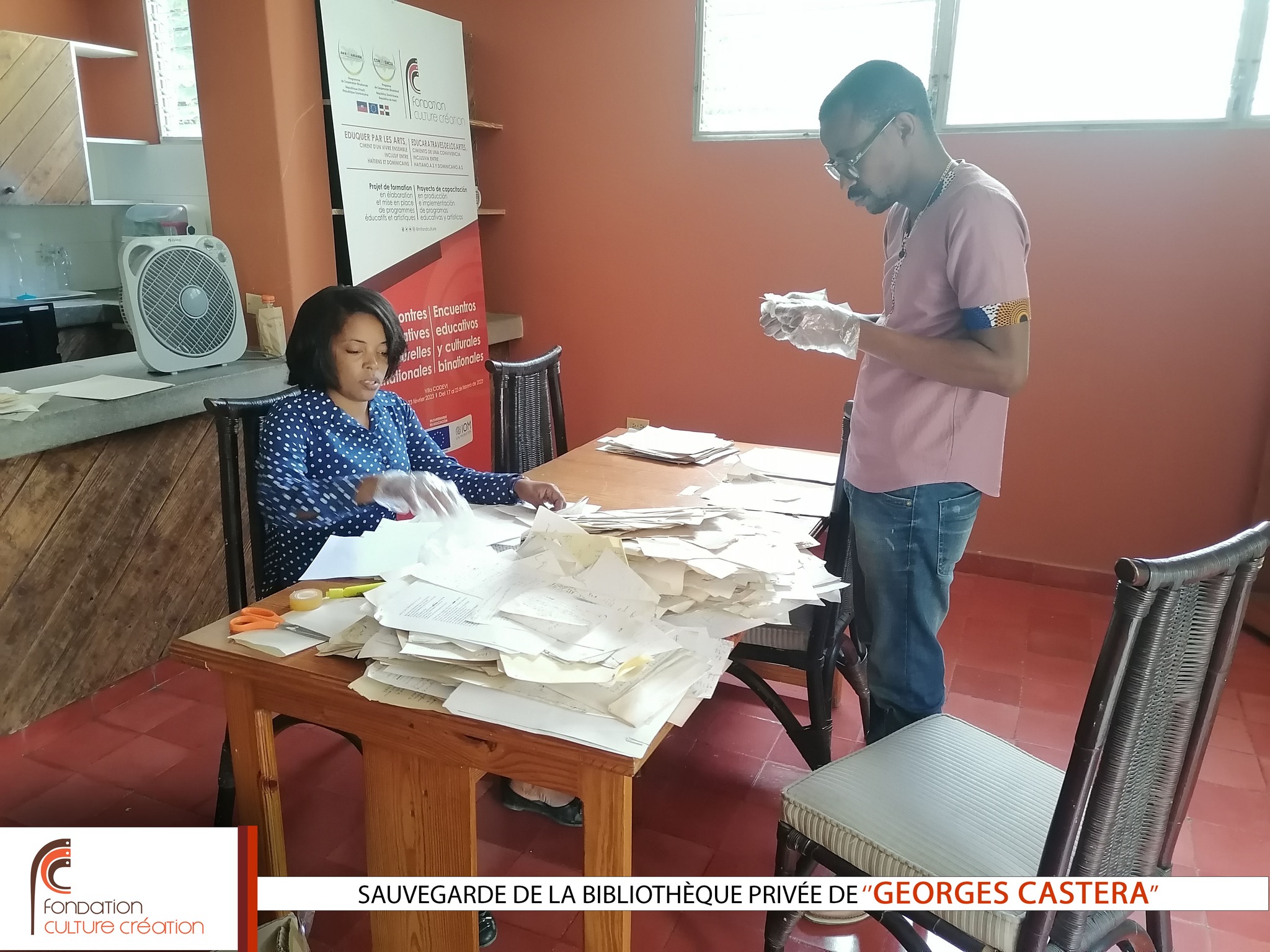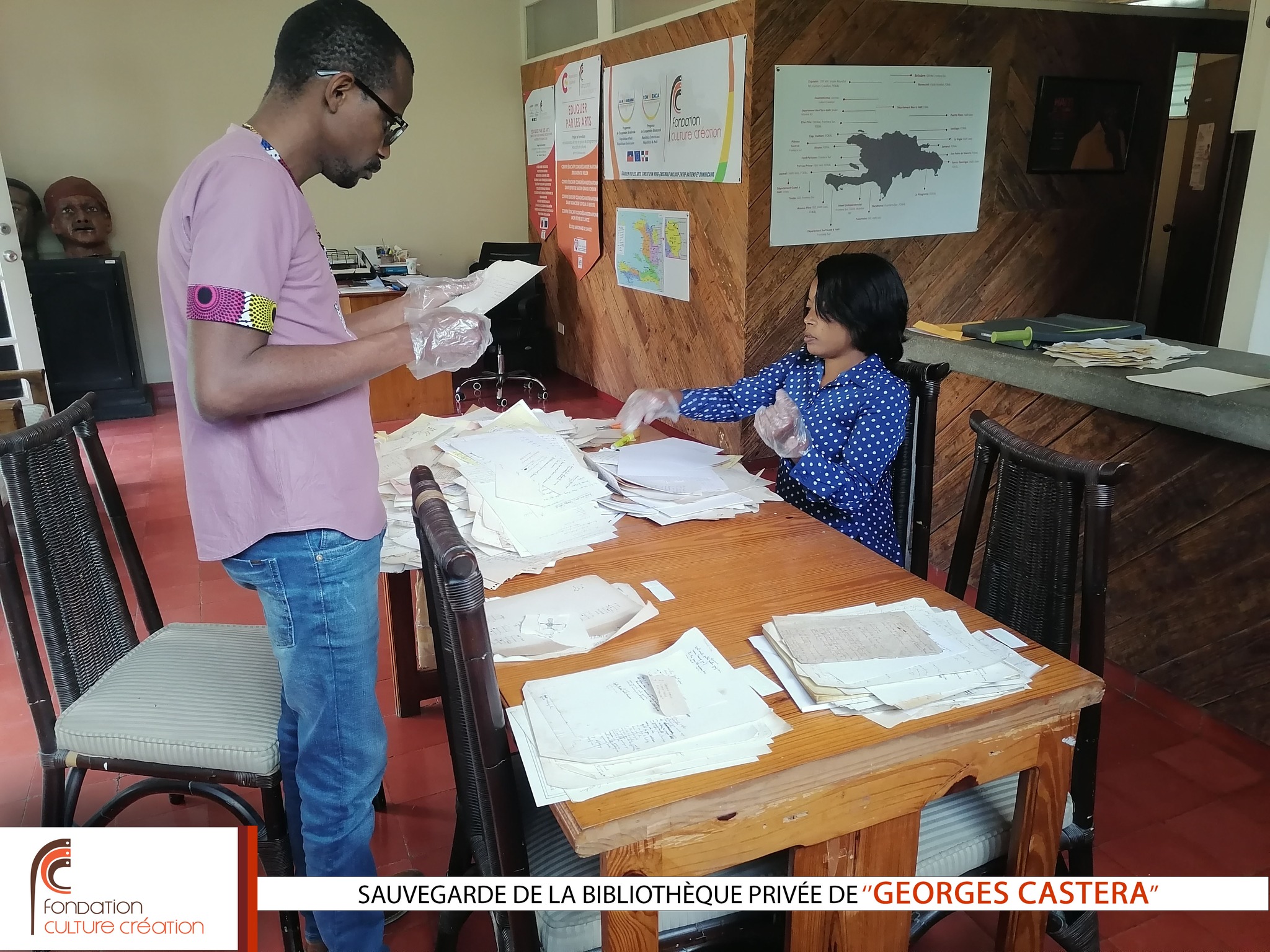 La phase II (traitement des manuscrits) de la sauvegarde de la bibliothèque privée du poète et critique Georges Castera continue dans les locaux de la Fondation Culture Création. Cette initiative est conduite par une équipe de la Bibliothèque Madeleine Paillière de la FCC sous la demande de la famille Castera.